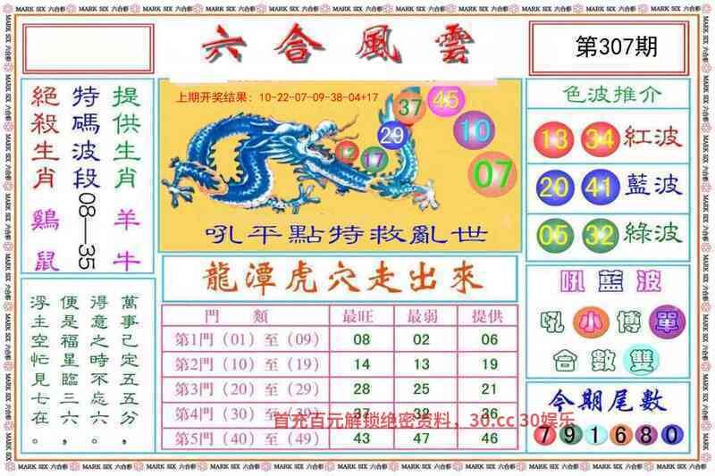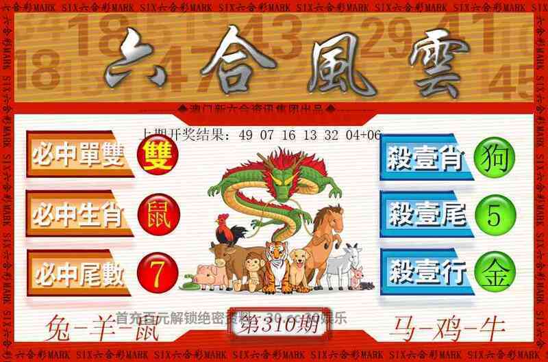 | 307期 | 鼠鸡牛 | 开狗20 |